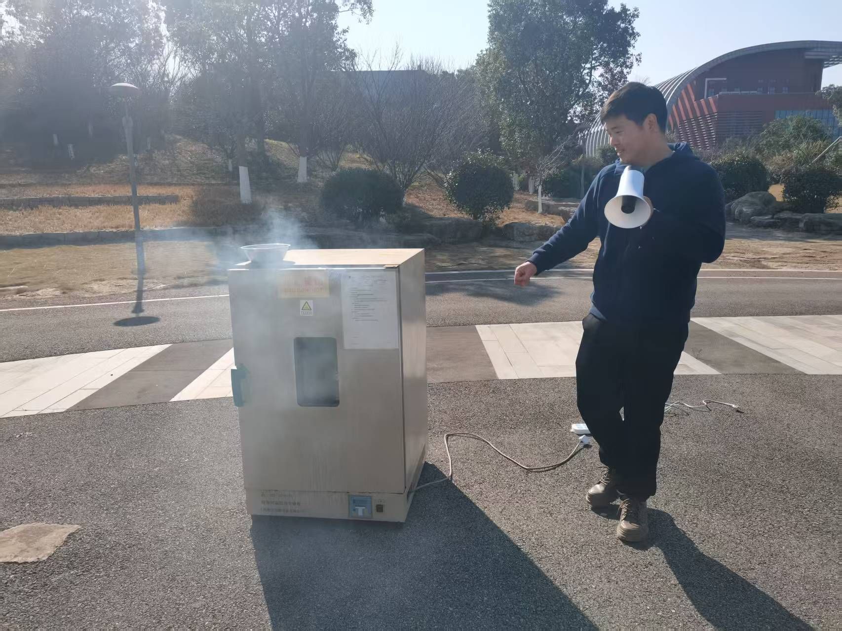 王晓朋老师现场讲解烘箱安全操作规程,重点演示烘箱引发火情后的正确处置流程,针对设备使用中的风险点与应急响应步骤进行详细拆解,为实验室常用高温设备的安全管理提供实操指南。