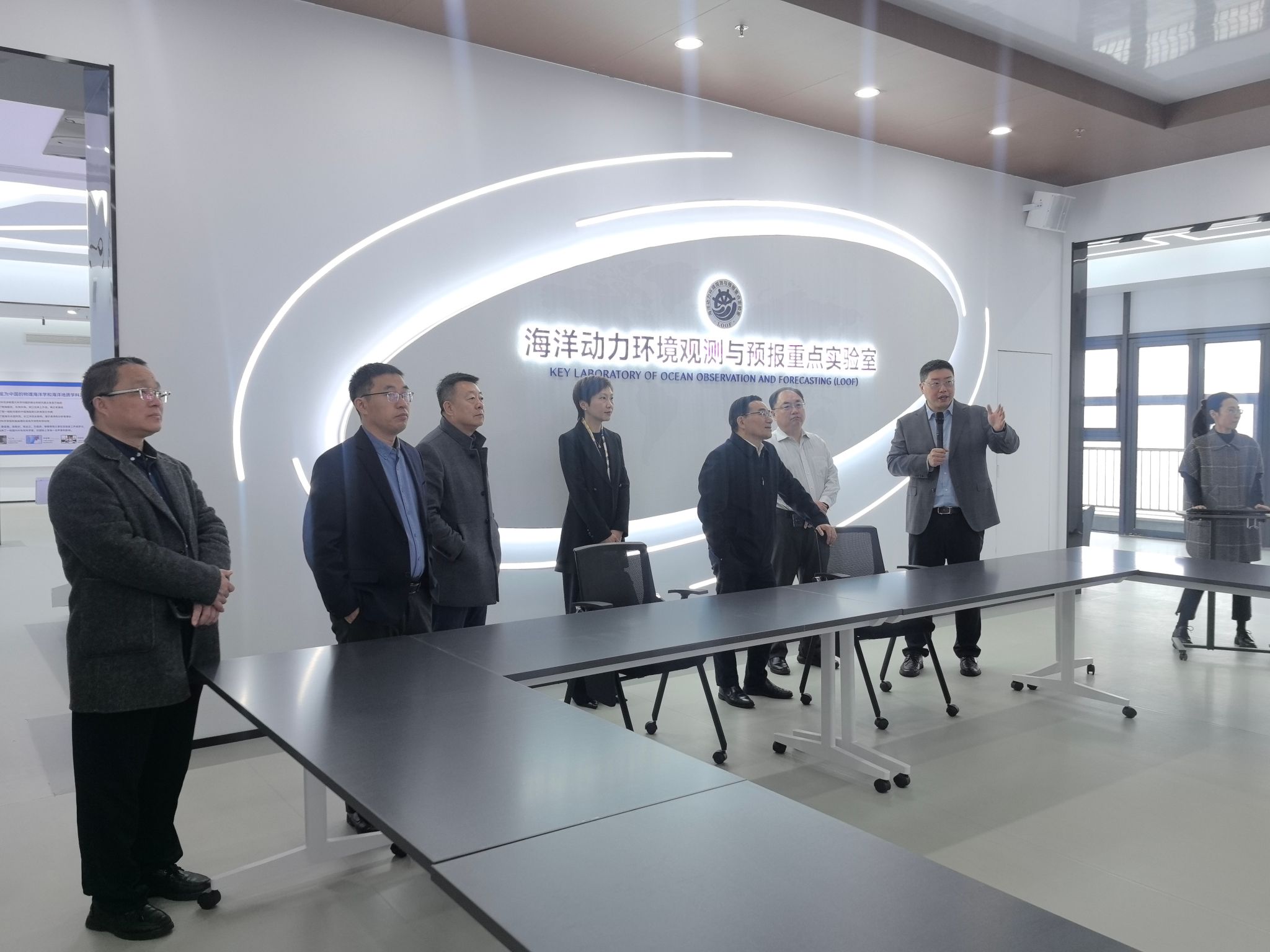 蔡荣根一行实地参观了海洋动力环境观测与预报重点实验室、水产品种创制与高效养殖全国重点实验室、所史馆。