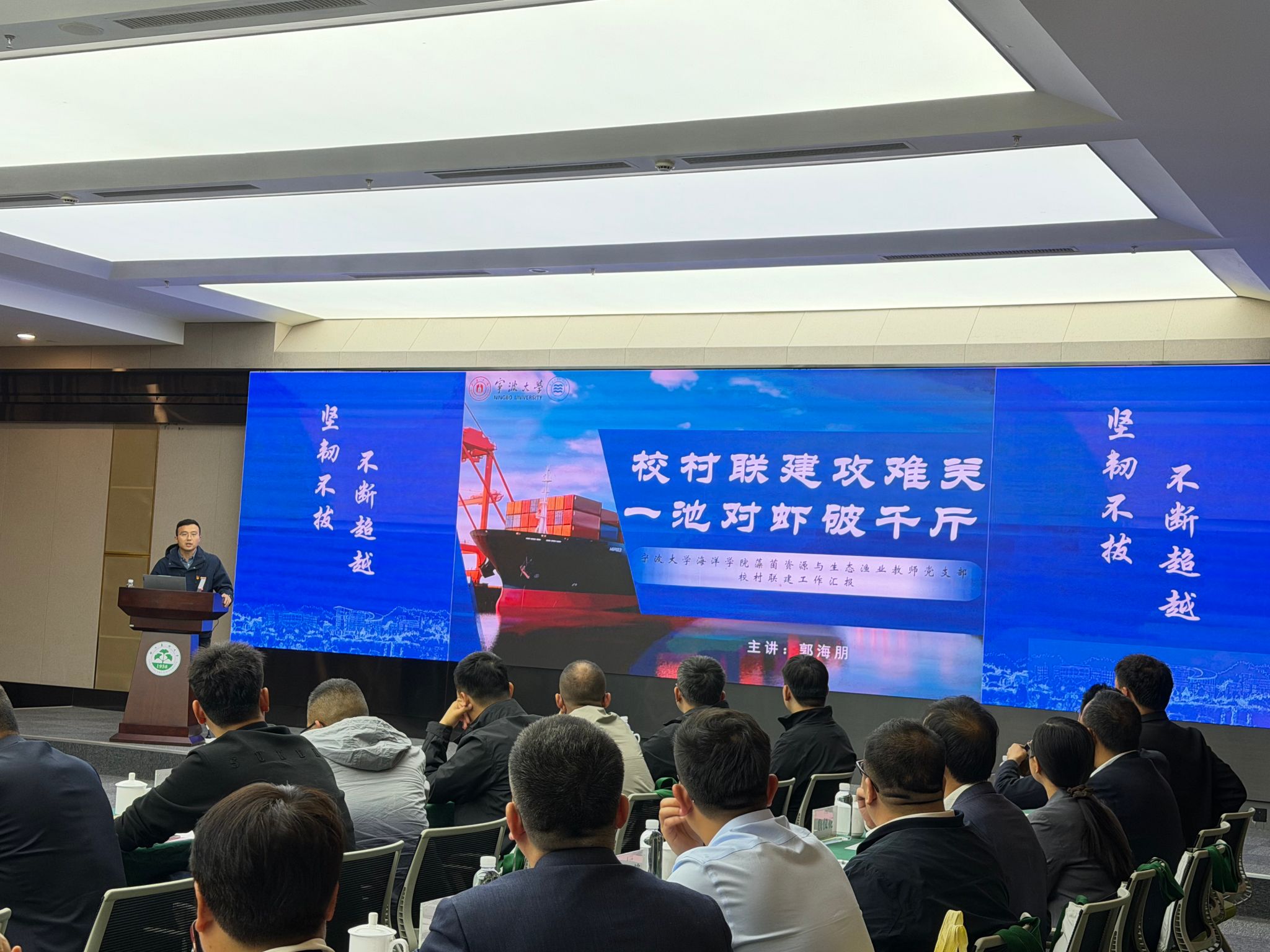 藻菌资源与生态渔业教师党支部作为全省5个入选案例之一,受邀在本次活动中进行现场展示交流,支部骨干郭海朋老师作主题汇报,以“校村联建攻难关,一池对虾破千斤”的实践成果,生动展现了高校党建赋能乡村振兴的“宁大样板”。