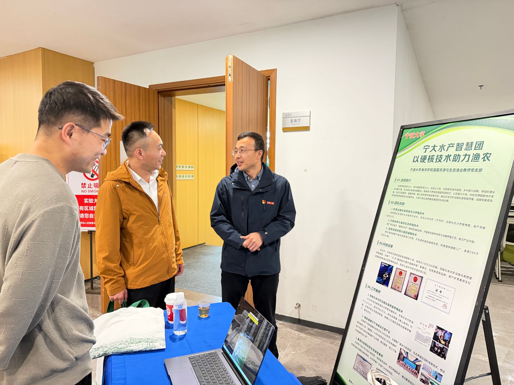 同步亮相的成果展示区,集中呈现了支部在虾类设施化养殖、贝类良种培育、藻类低碳养殖等领域的丰硕成果。近五年,支部成员获批国家级课题数十项,发表SCI顶刊论文200余篇,获浙江省科学技术进步奖2项,其中紫菜科技帮扶案例获评第四届全球最佳减贫案例,向世界推广了中国产业扶贫的“浙江经验”。